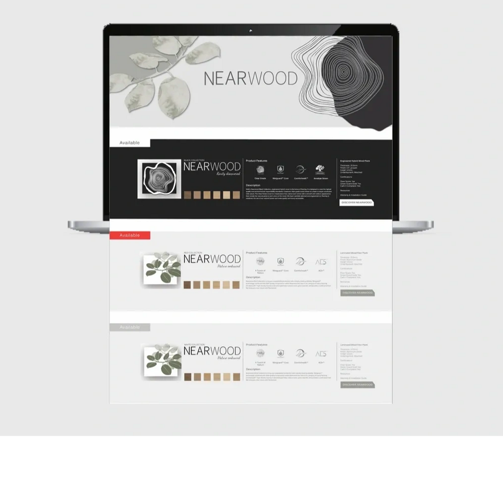 As the lead designer, I crafted NEARWOOD's new product page and identity, focusing on showcasing its unique features and elegance. I designed logos, fonts, and graphics that reflect the brand's commitment to quality and authenticity. The user-friendly page features high-quality images and clear descriptions, providing a seamless browsing experience that captures NEARWOOD's essence.